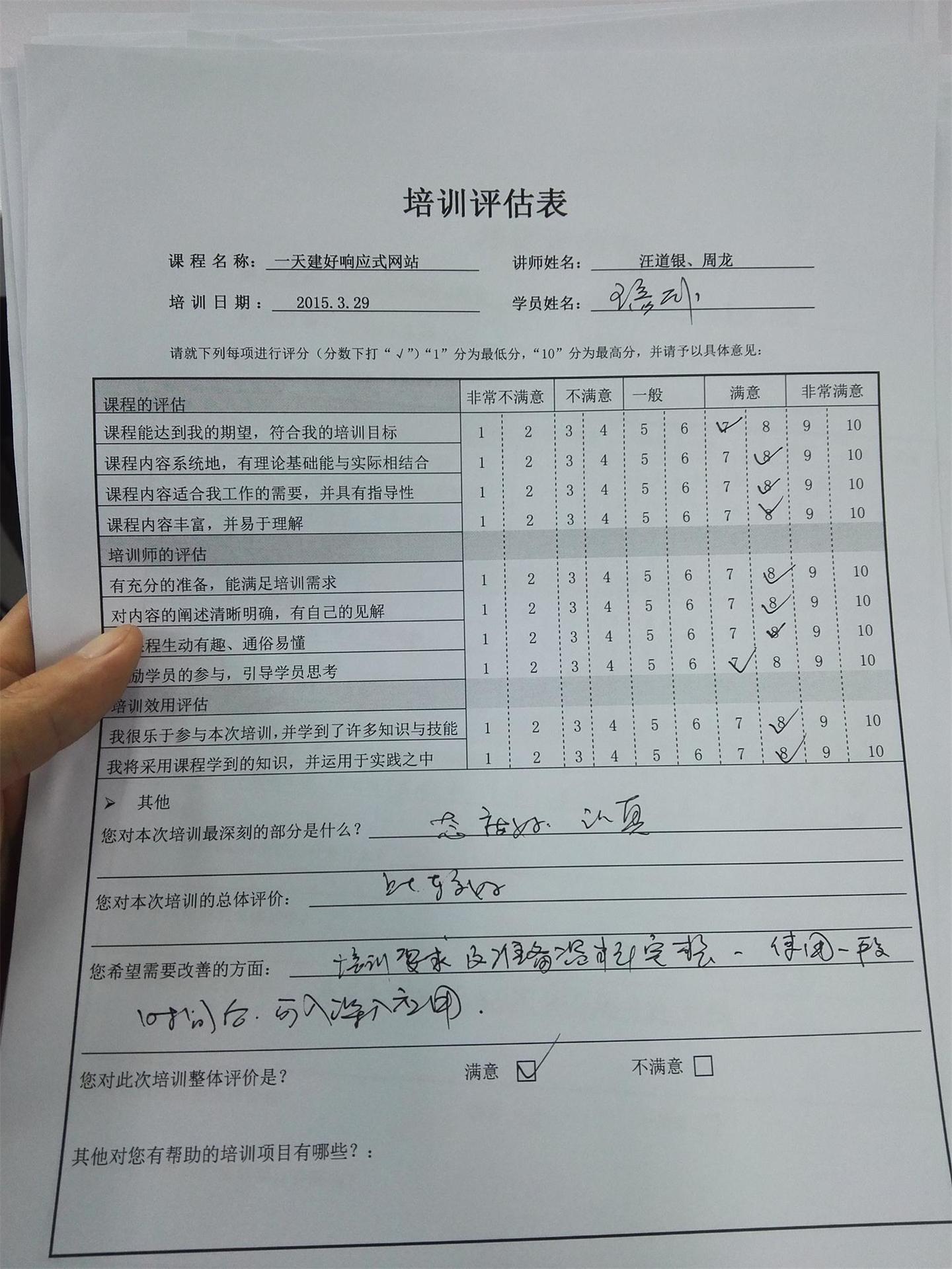为了能及时得到学员的反馈和建议,并对培训课程进行综合评估,培训结束后培训部特地发放了问卷调研,希望在下次培训课上有更加精彩的培训内容。