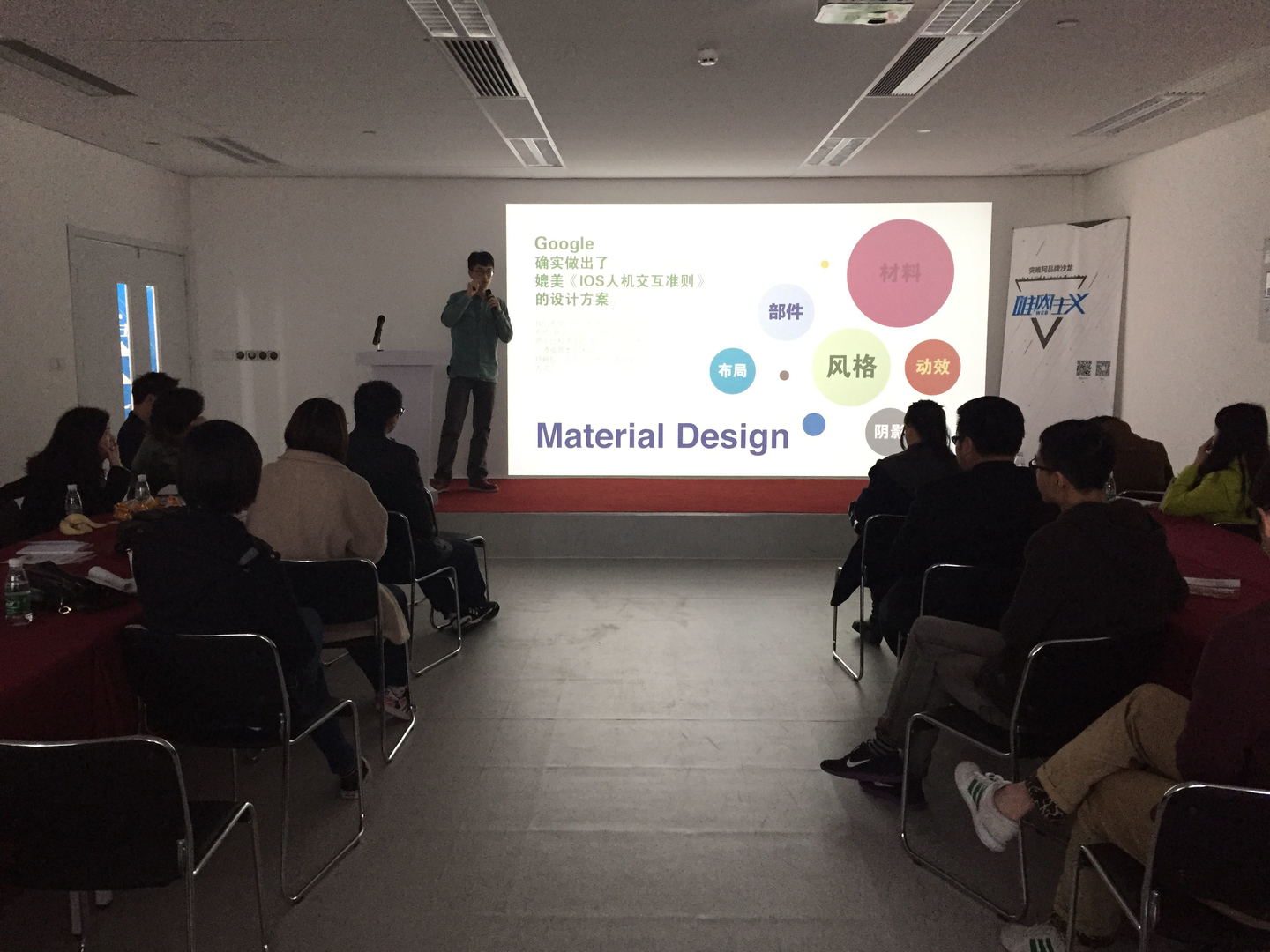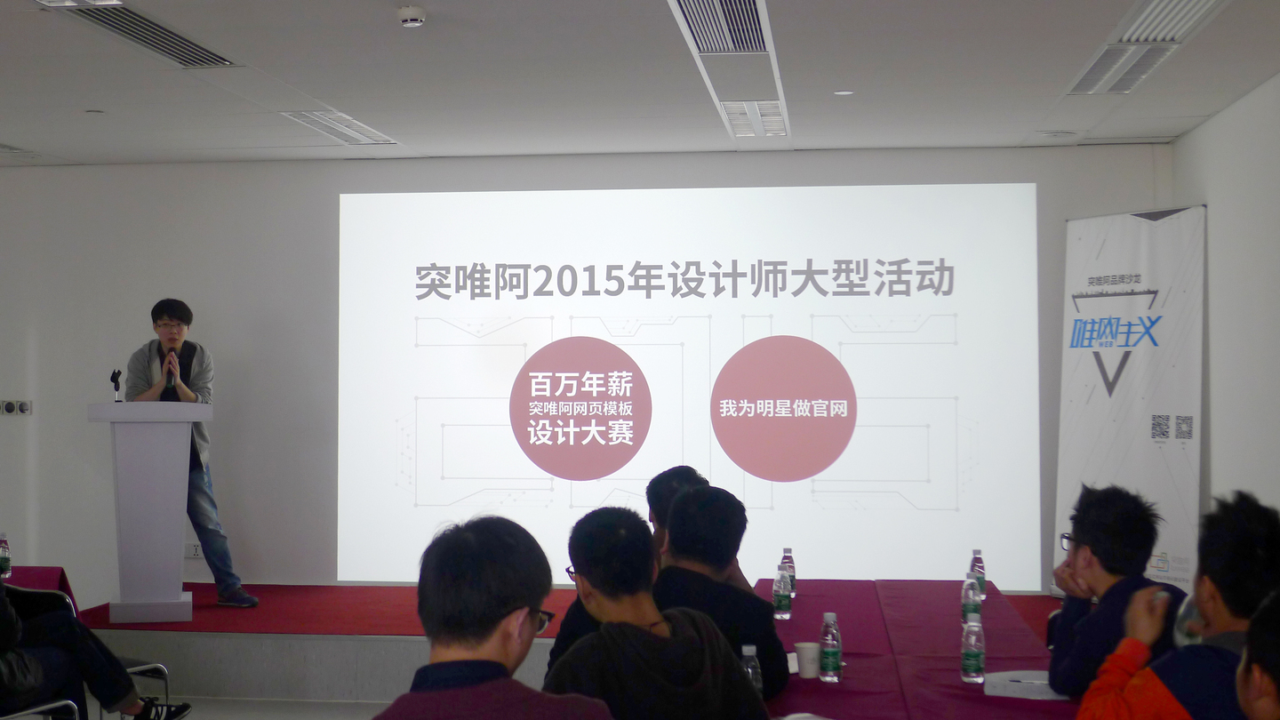 本 次沙龙主要是由突唯阿品牌部执行总监马雪飞发起并主讲,突唯阿首席UI设计师梁允应、模板设计师主管曾交银、设计师周展宇协助分享从业心得和行业观点。分 别从设计师如何利用互联网赚钱,响应式网页设计技巧与案例分享、material design规范的应用方面分享了自己的心得,获得了设计师们的一致认可!